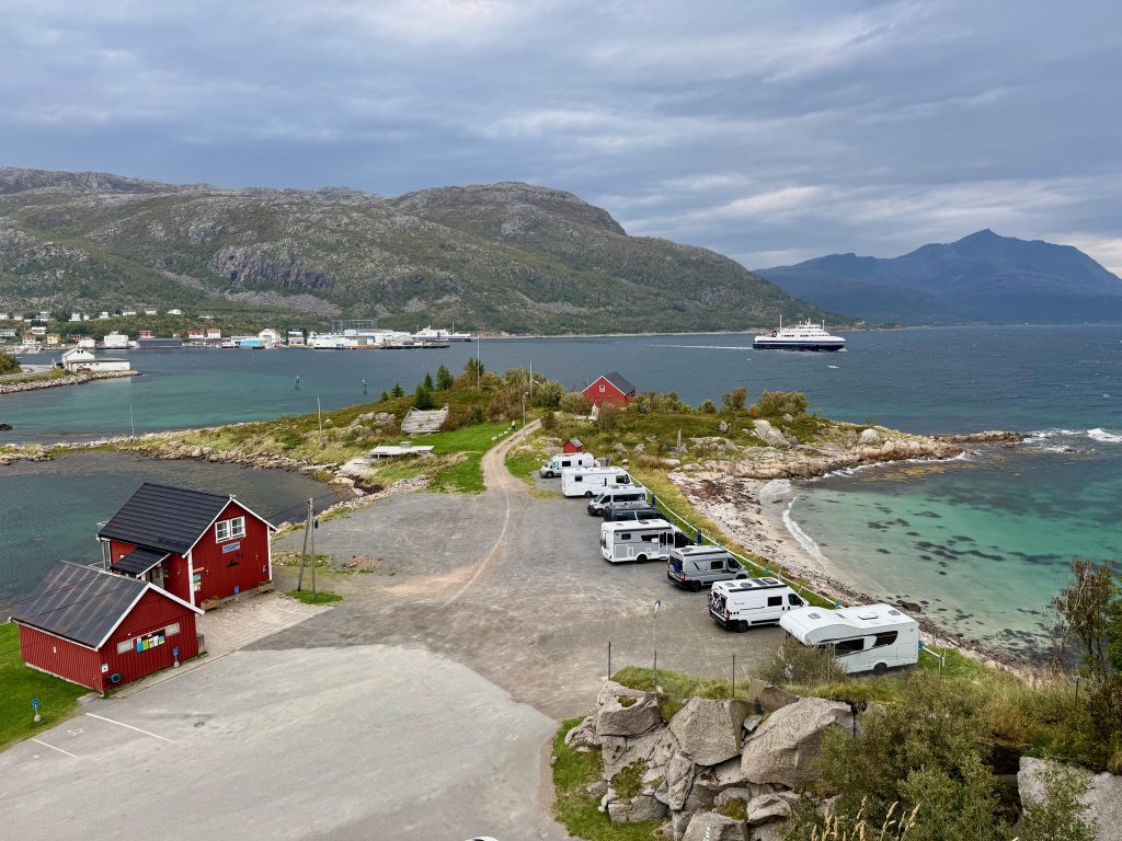 Nach einem ganzen Tag Fahrt kamen wir zu einer vernünftigen Zeit an unserem nächsten Stopp an: Lødingen. Es gibt einen wirklich schönen Campingplatz (Bobilcamp) mit allen Einrichtungen. Wir liebten den Platz: sehr ruhig, mit einem Leuchtturm und einem Strand, perfekt um Zeit zu verbringen und sogar angeln zu gehen. Wir machten Wäsche und spazierten durch diesen charmanten Ort. Es gibt einen sehr kurzen Spaziergang zum Leuchtturm mit toller Aussicht.