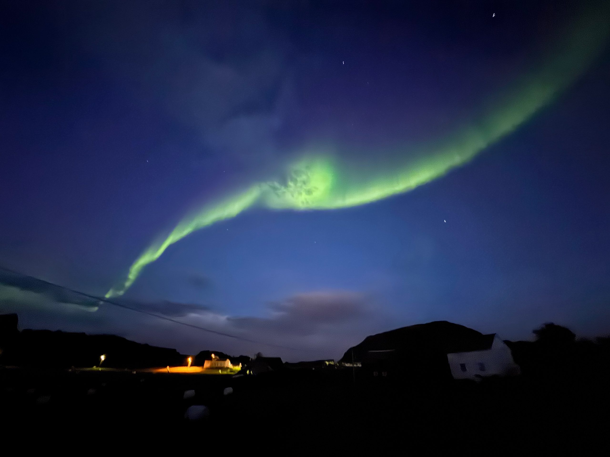 Aber es ist nicht vorbei, bis es vorbei ist. Die Nacht hielt noch eine Überraschung für uns bereit. Wir konnten ein weiteres Nordlichter-Spektakel erleben, viel besser als am Tag zuvor. Wir hätten nicht glücklicher sein können, dieses Geschenk in unserer letzten Nacht noch einmal genießen zu dürfen.