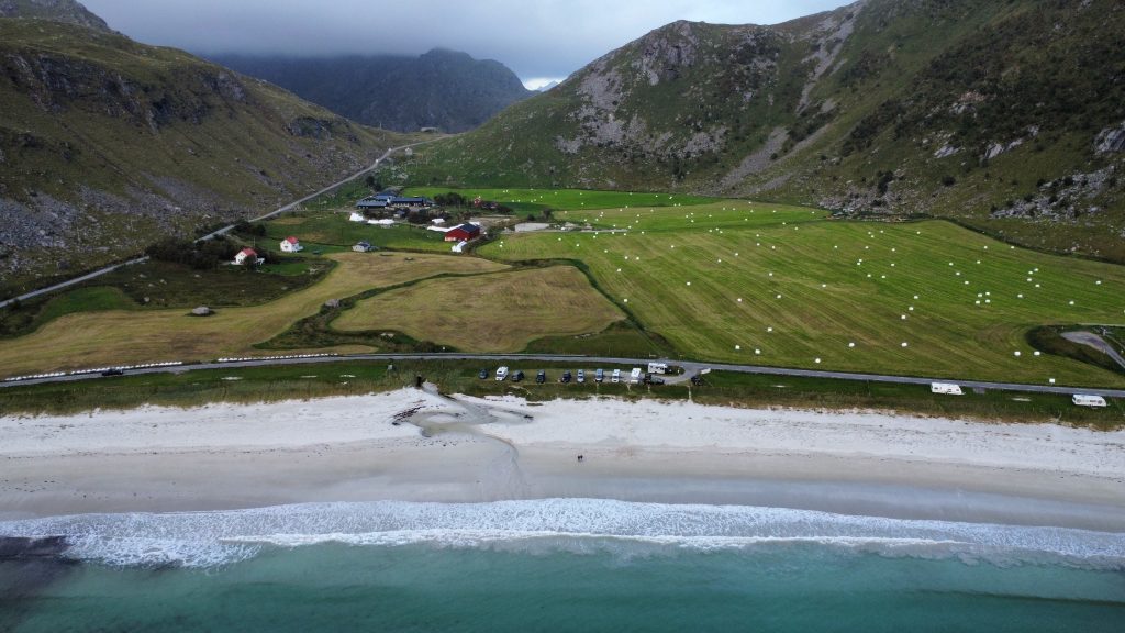 Am Nachmittag ging es weiter Richtung Strand. Haukland Beach ist einer der berühmtesten Strände der Lofoten. Gleich daneben, am Vik Beach, fanden wir einen privaten Stellplatz mit einer Top-Lage.