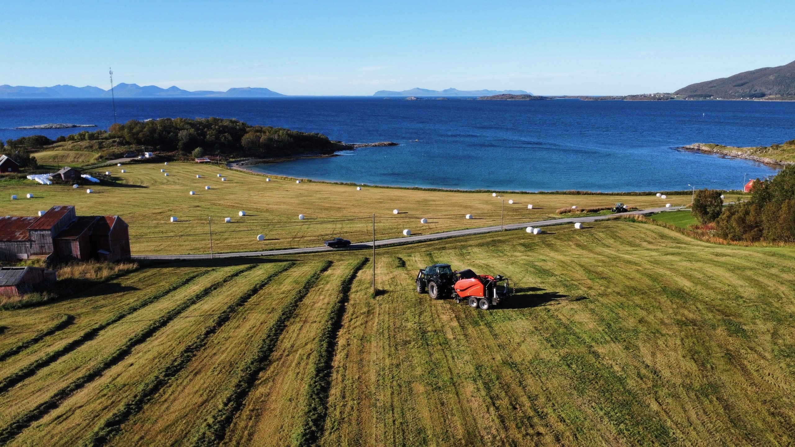 Dieses winzige Dorf heißt Elgsnes und besteht aus kaum mehr als 5 Häusern, einem Bauernhof, einem Strand und einer Kirche. Buchstäblich am Ende der Straße gibt es einen kleinen Platz, damit Fahrzeuge wenden können, und daneben ist Platz für ein paar Fahrzeuge. Da wir früh dran waren, hatten wir Glück, einen Platz zu finden, und entschieden uns, die Nacht dort zu verbringen. Den Rest des Tages genossen wir den Strand, beobachteten den Traktor beim Bestellen des Feldes neben dem Bauernhof und entspannten natürlich beim Sonnenuntergang.